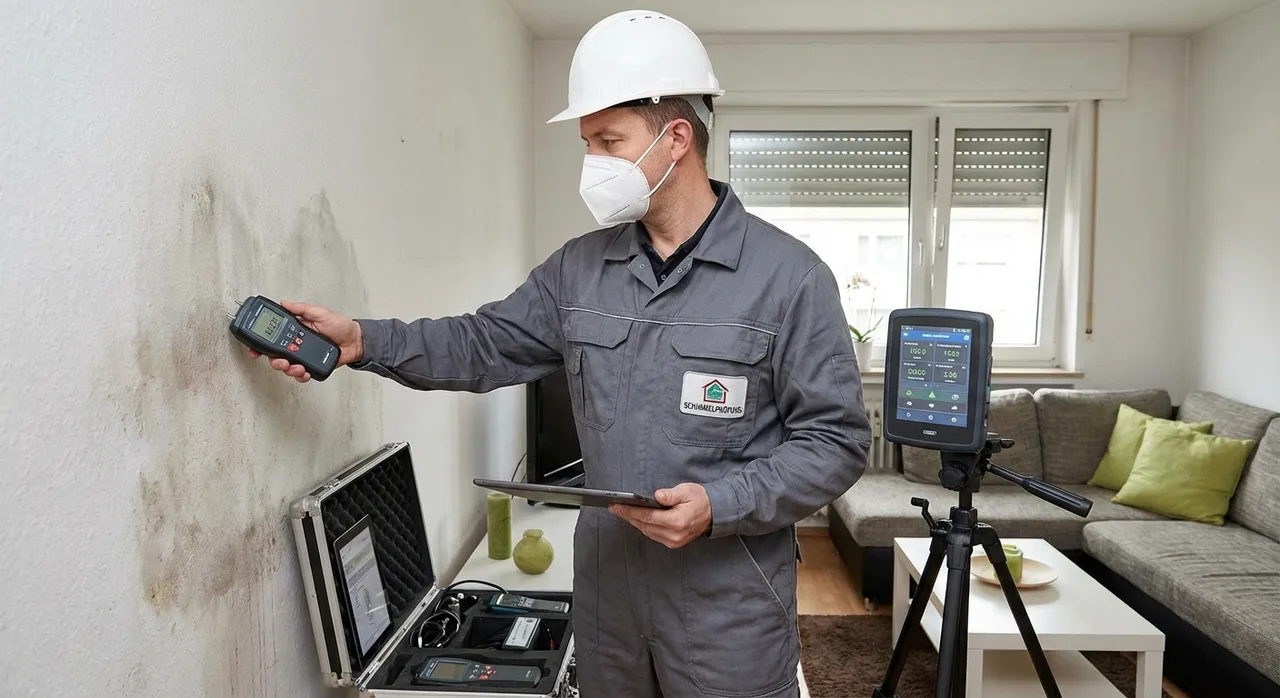 Eigene Messgeräte: Feuchtemesser, IR-Thermometer, Hygrometer. Zusammenarbeit mit zertifiziertem Umweltlabor.